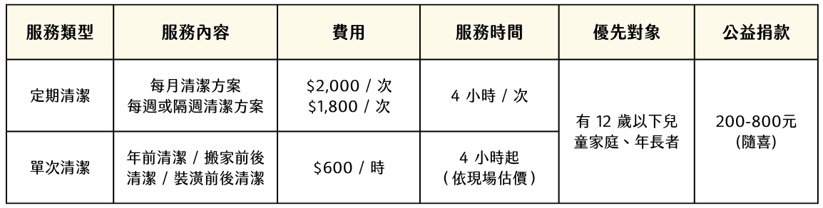▶ 如有家事服務需求,請直接按此【填寫表單】,將有專人與您聯繫確認!