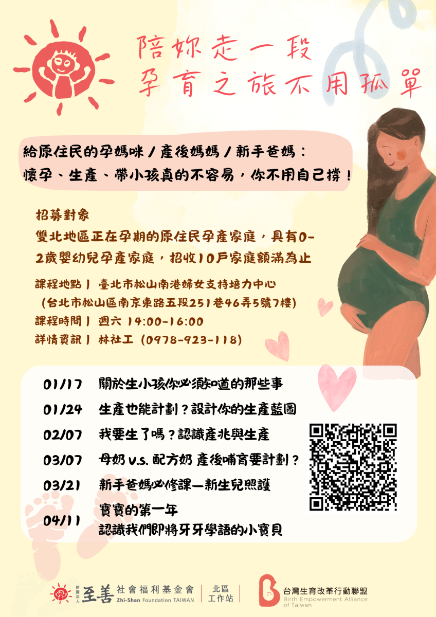 原住民孕產育兒支持課程 ── 陪妳走一段,孕育之旅不用孤單